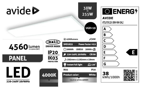 Termékkód: ATSLP30120-38W-NW-DALI