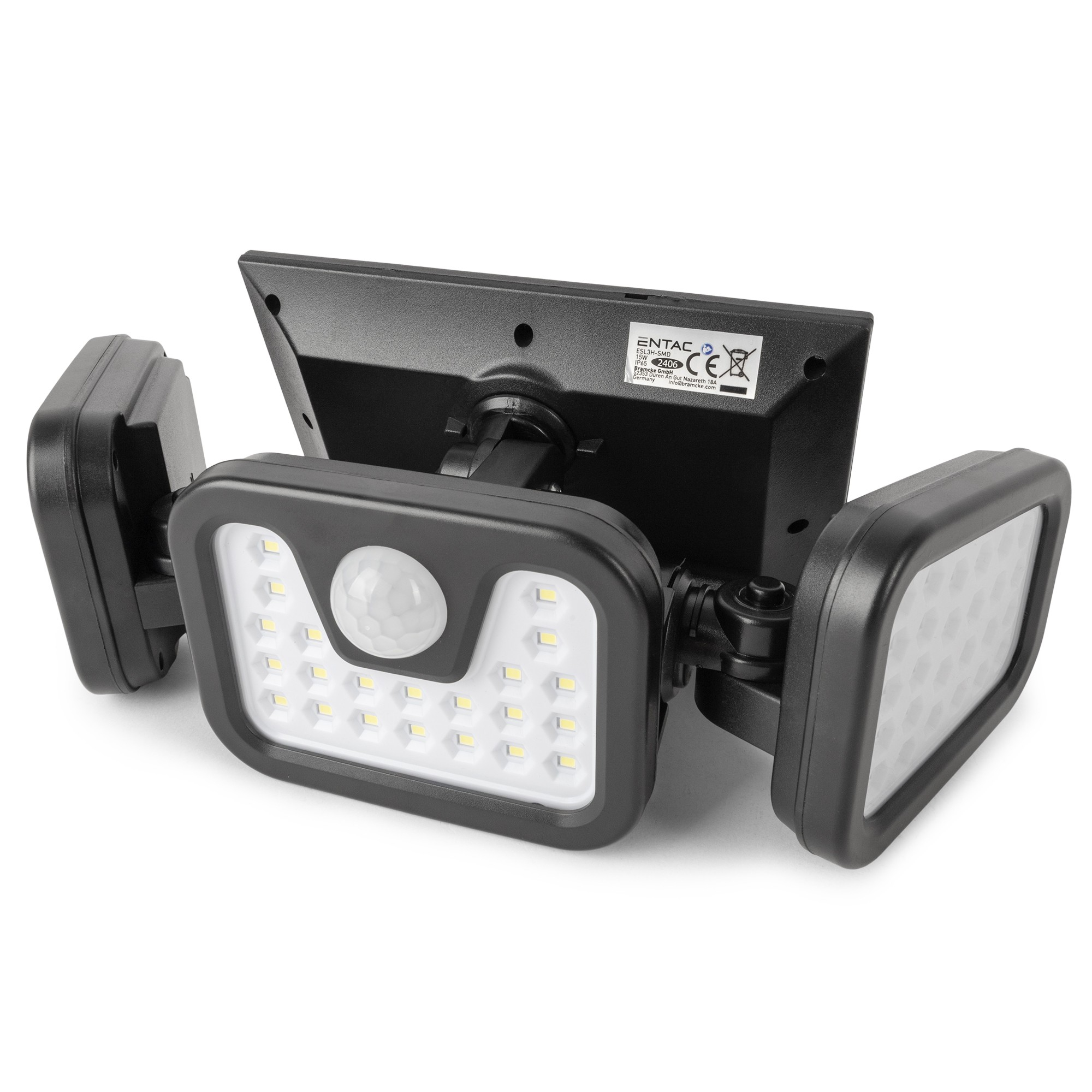 Napelemes Műanyag Fali lámpa 15W SMD 3 fej mozgásérzékelővel